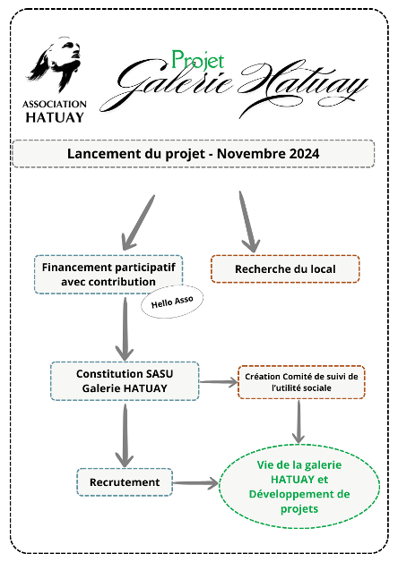 - Après la réussite des 2 premières étapes, constitution de la SASU Galerie HATUAY par l’association HATUAY.